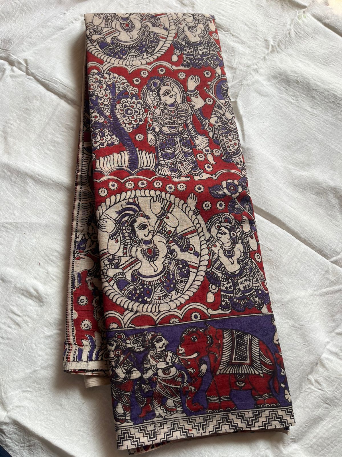 Mangalagiri Handloom Cotton Kalamkari Saree – Red